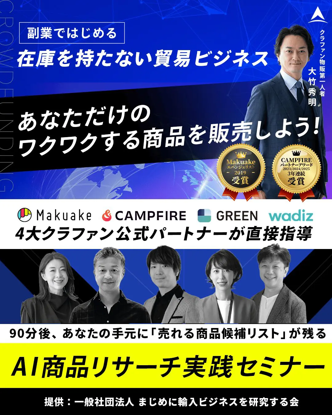 資金や語学力がない初心者でもクラウドファンディングを活用した貿易物販ビジネスが構築できる『ひとり貿易』を生み出す。