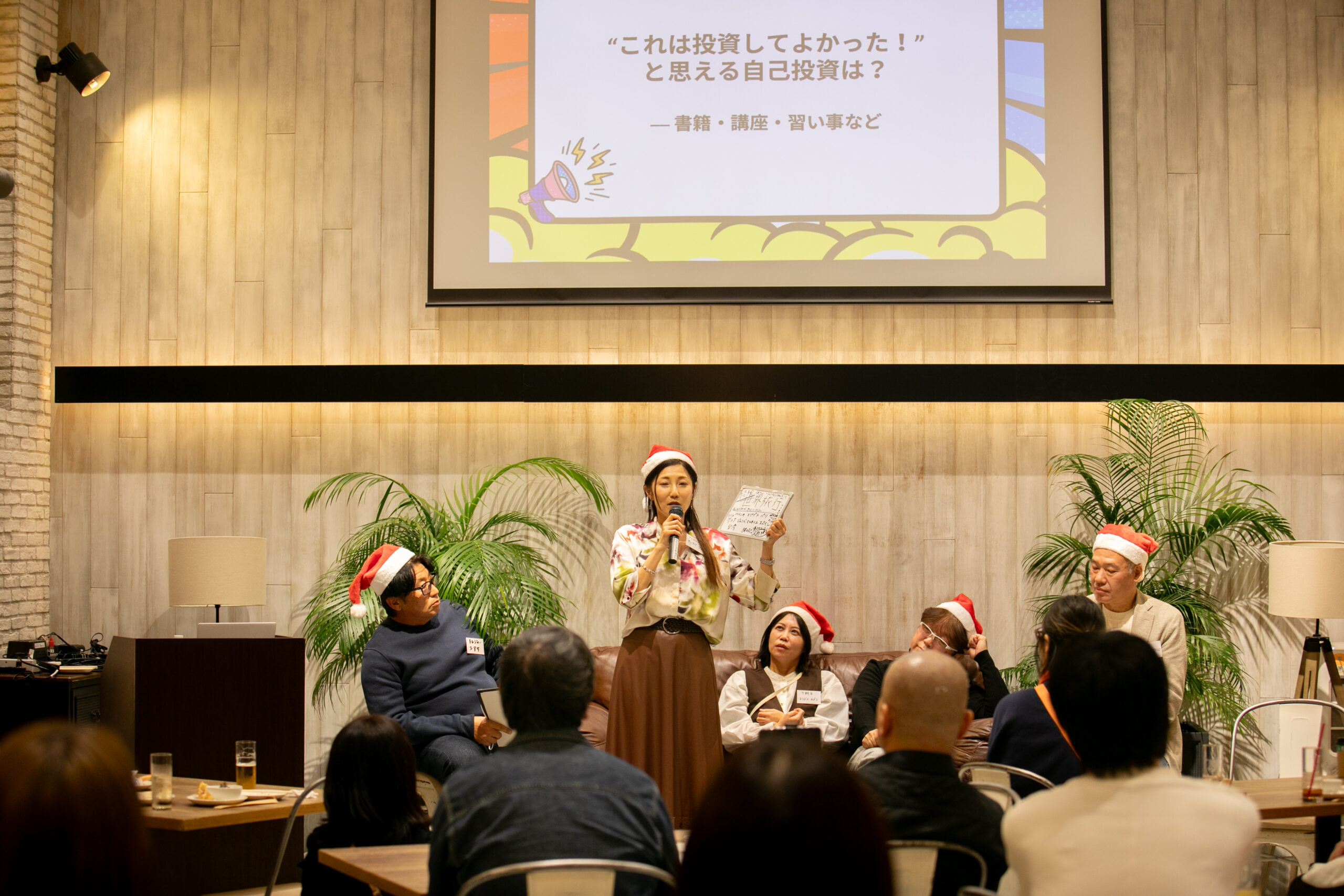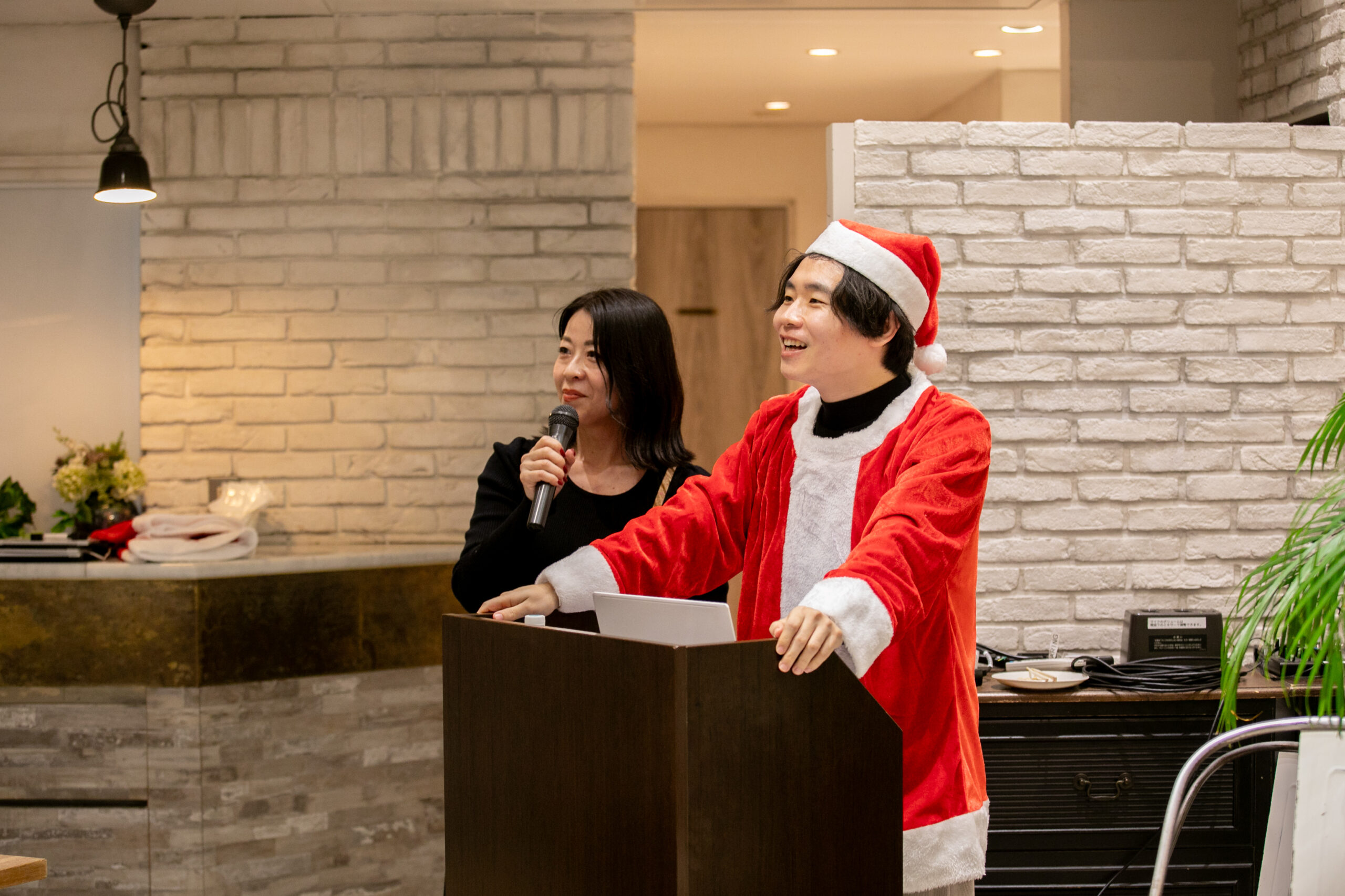 クリスマスメドレーが会場に流れ、忘年会は一気に温かな締めくくりの時間へ。
