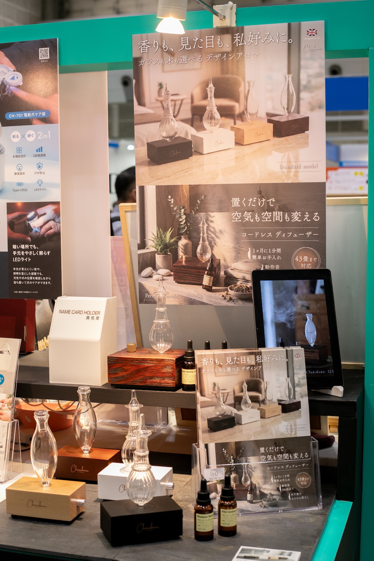 そのほかにも、自社ブランドとして展開する新商品や、OEMで開発が進められている化粧水など、「完成形」だけでなく、「これから世に出ていく途中段階」の商品も多く展示されていました。