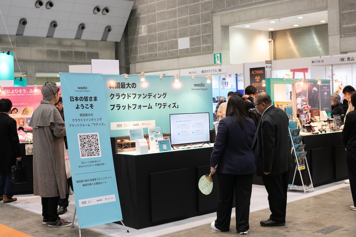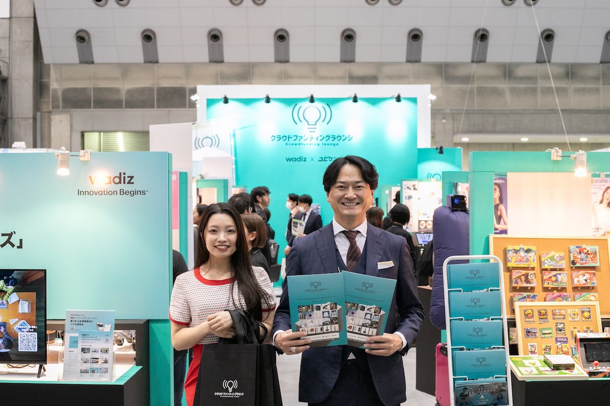 その連携を象徴するかのように、今回のクラウドファンディング・ラウンジのブースカラーは、Wadizをイメージしたブルー。黒や白を基調としたブースが多い会場の中で、ひときわ目を引く存在でした。